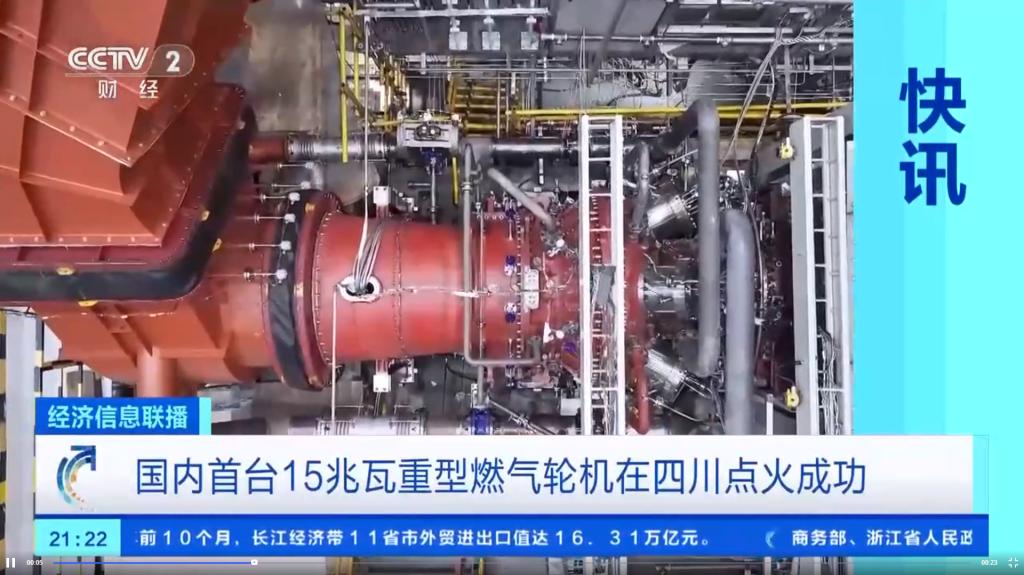 [央视新闻]整体热效率超过35%!国内首台15兆瓦重型燃气轮机点火成功